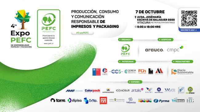 Con el objetivo de seguir fomentando espacios que impulsen la producción y el consumo responsable, PEFC Chile realizará el próximo 7 de octubre la cuarta versión de la Expo de Sostenibilidad, Papeles y Packaging, un evento gratuito y abierto al público, que tendrá lugar en Metropolitan Santiago, Vitacura.