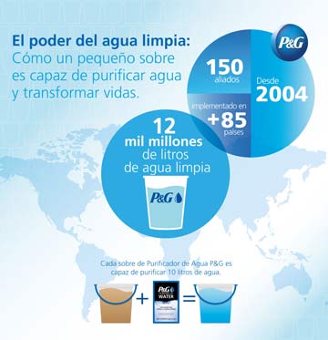 Con el objetivo de crear conciencia frente a esta crisis mundial y aportar a su solución, P&G creó en 2004 el programa Agua Limpia para los Niños, iniciativa que se basa en la capacitación y distribución de sobres Purificadores de Agua P&G, los que logran transformar en solo 30 minutos agua sucia en líquido apto para ser bebido.
