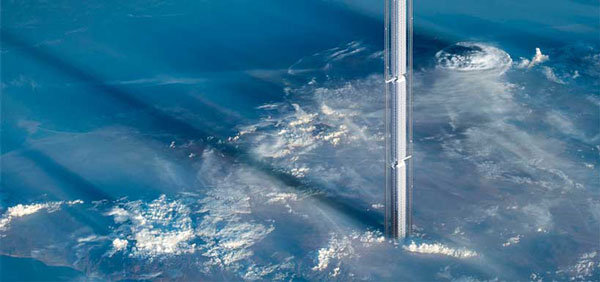 El edificio mediría 32 mil metros de alto y orbitaría la Tierra entregando cada día paisajes de distintas partes del mundo.