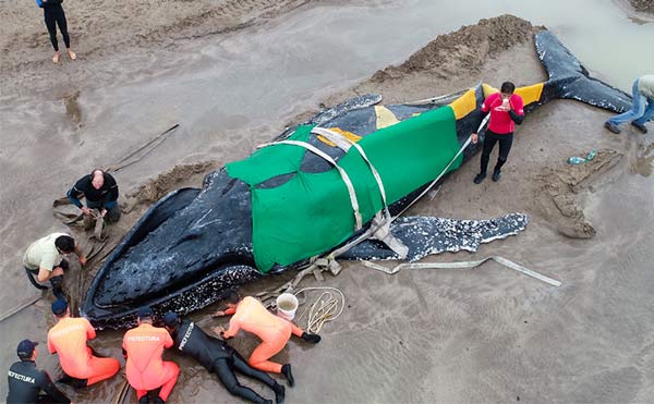 Sergio Di Napoli, de la empresa Remolcadores de Mar del Plata, dijo al canal de cable Todo Noticias que los participantes en las tareas de rescate usarán un remolcador con un cabo de 300 metros ligado a la ballena para meterla al mar. Explicó que Prefectura Naval (la policí­a guardacostas) y Defensa Civil diseñaron un arnés especial para que la ballena no sufra daños a medida que el remolcador tire de forma gradual de ella.