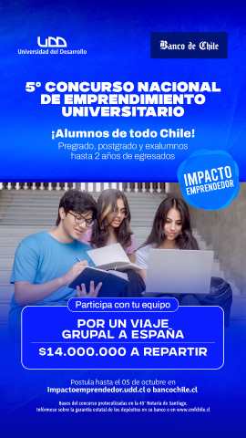 Banco de Chile y UDD convocan a jóvenes universitarios a participar en el 5° Concurso Nacional Impacto Emprendedor