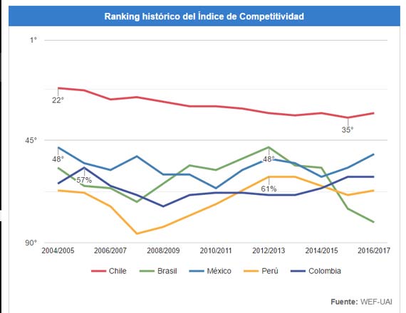 Aún así, el informe del Foro Económico Mundial presentado por la Universidad Adolfo Ibáñez (UAI) enfatiza que «es prematuro concluir que este ascenso rompe la tendencia negativa observada en los últimos años, pese a la ocurrencia de mejoras puntuales en 2007, 2010 y 2014».