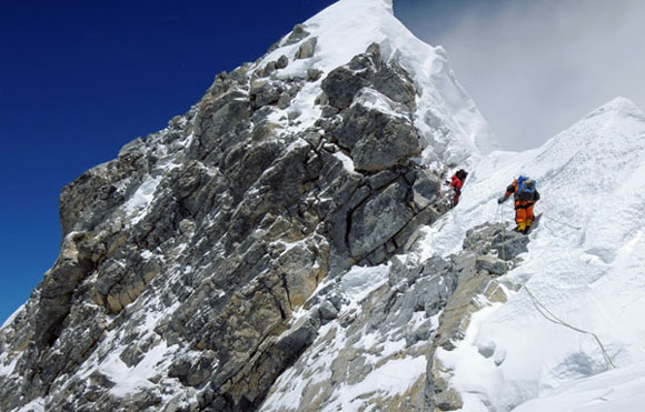 El escalón Hillary, de unos 12 metros, es la última gran dificultad para conquistar la cumbre por la atención y paciencia que requiere, tanto en la ascensión como en el descenso, ya que la estrechez del paso obliga a formar largas colas, con el consiguiente retraso y el peligro que supone que anochezca.