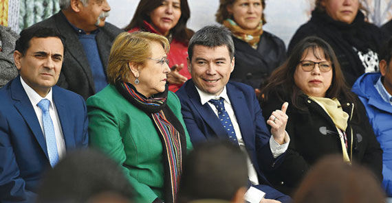 La actividad podría haber sido una más dentro de la agenda de la Mandataria, pero no fue así por dos razones. Primero, Bachelet, que coincidencia o no, vestía una vistosa chaqueta color verde, decidió estar acompañada del ministro de Medio Ambiente, Marcelo Mena, quien ha estado en el centro del debate de los últimos días tras liderar el polémico rechazo del Comité de Ministros del proyecto minero Dominga, que generó críticas en el propio equipo económico del gobierno. Fuentes del Ejecutivo comentan que fue la Presidenta Bachelet quien pidió que el titular de Medio Ambiente se sentara justo a su lado.