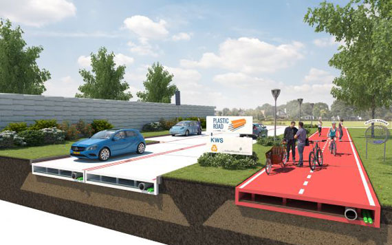 El concepto de la carretera de plástico, presentado por primera vez en 2015 y creado por Koudstaal y Simon Jorritsma, consiste en la construcción de módulos ligeros a partir del reciclaje de residuos plásticos.