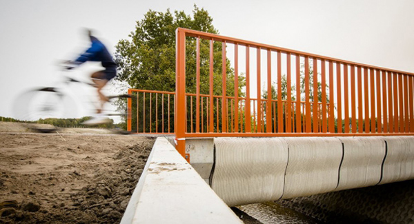 El puente de ocho metros conecta dos carreteras por encima de una acequia llena de agua, Con la ayuda de la empresa constructora BAM Infra, fue sometido a pruebas para garantizar que podía soportar cargas de hasta dos toneladas.
