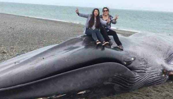 Gabriela Garrido, bióloga marina del Museo de Historia Natural de Río Seco, en Punta Arenas, aclaró al mismo vespertino que muchas personas que llegaron hasta el lugar se sacaron fotos arriba de la ballena, y no sólo esas dos mujeres.