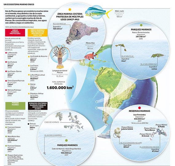 Al finalizar este gobierno, el territorio marino protegido en Chile alcanzará cerca de 1.600.000 km², casi tres veces lo que estaba protegido a principio de año (463.000 km²), ubicándose como uno de los cinco países con más áreas marinas bajo algún tipo de protección en el planeta.