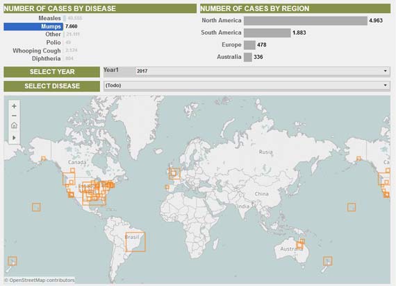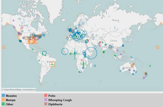 Los casos de epidemia de sarampión, paperas, tos ferina, entre otras, se han ido incrementando desde 2008 en diferentes naciones del mundo desarrollados. El Consejo de Relaciones Exteriores de Estados Unidos desarrollaron un mapa en donde se puede ver de manera interactiva, qué países han vuelto a ser víctimas de enfermedades que se pueden prevenir con una vacuna.
