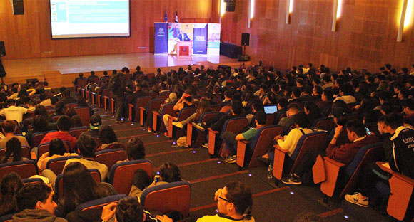 Ante una masiva concurrencia de académicos y estudiantes, la conferencia se realizó en el Aula Magna de la U. San Sebastián y contó, además, con la asistencia de alumnos de alumnos de la carrera de educación física.
