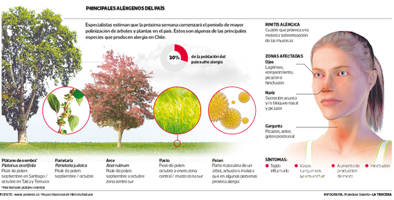 Gloria Rojas, jefa del Área Botánica del Museo Nacional de Historia Natural, dice que el árbol que conocemos como plátano oriental es en realidad un híbrido entre las variedades occidentalis y orientalis (y que en España se conoce como plátano de sombra), el que produce más polen que el original, lo que ocurrirá en forma masiva durante la segunda semana de septiembre. Por su rápido crecimiento y buena sombra, estos árboles se plantan en las calles, pero en ciudades como Barcelona, por ejemplo, se podan antes de la primavera y así se reducen los síntomas en los alérgicos.