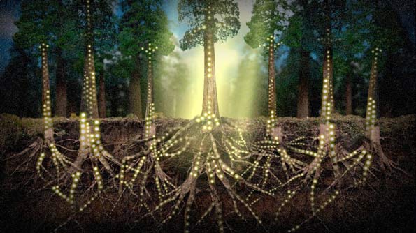 Éste indica que todos los árboles de un bosque, sean de la misma o de distinta especie, están conectados entre sí a través de una red subterránea de micorrizas –hongos que se conectan entre ellos y con las raíces de los árboles–, por la que se traspasan recursos vitales, como carbono, agua, nitrógeno y fósforo, pero también comparten información más compleja y establecen distintos tipos de relaciones, configurando un verdadero sistema.