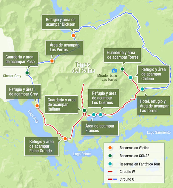 Además, es necesario llevar impreso los comprobantes de reservas para presentarlos en los controles de acceso a los senderos W y Circuito Macizo Paine.